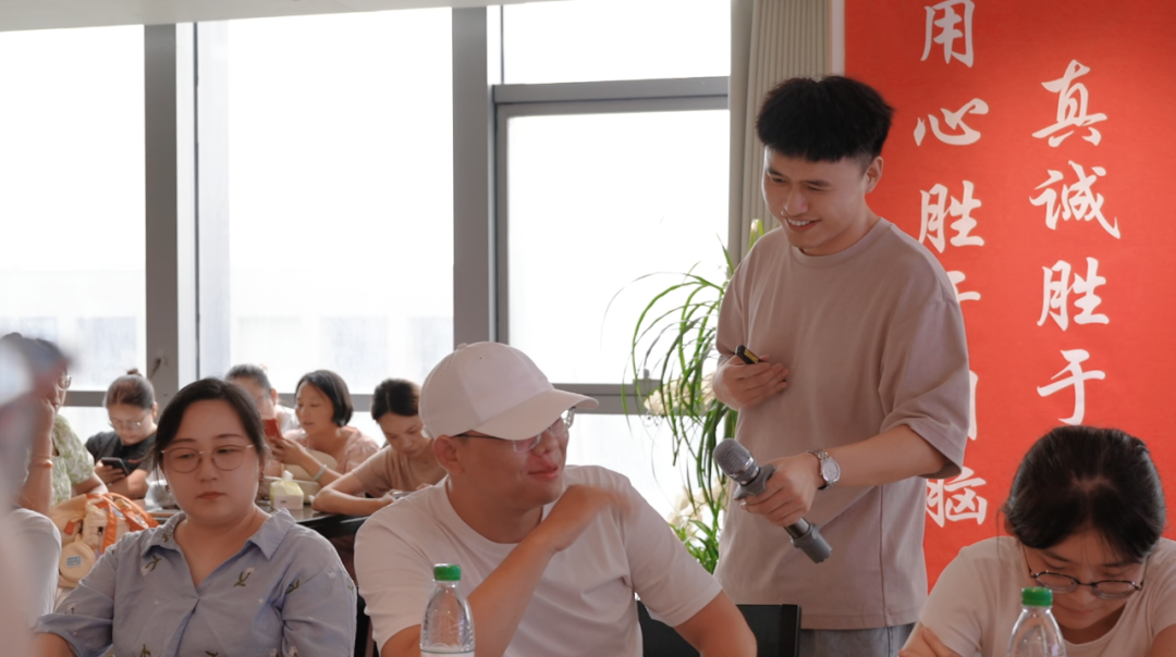 在主持人的帶領(lǐng)下,大家通過“聽歌猜劇”“你來比劃我來猜”等游戲進行分組,并選出接下來分組活動的組長。