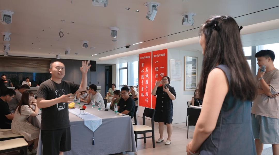 下午兩點,單身青年職工陸續(xù)來到現(xiàn)場,通過抽取卡牌的形式,陌生的他們兩兩組隊,完成接下來的破冰游戲。自我介紹之后,一場浪漫的夏日約會就此開始了。