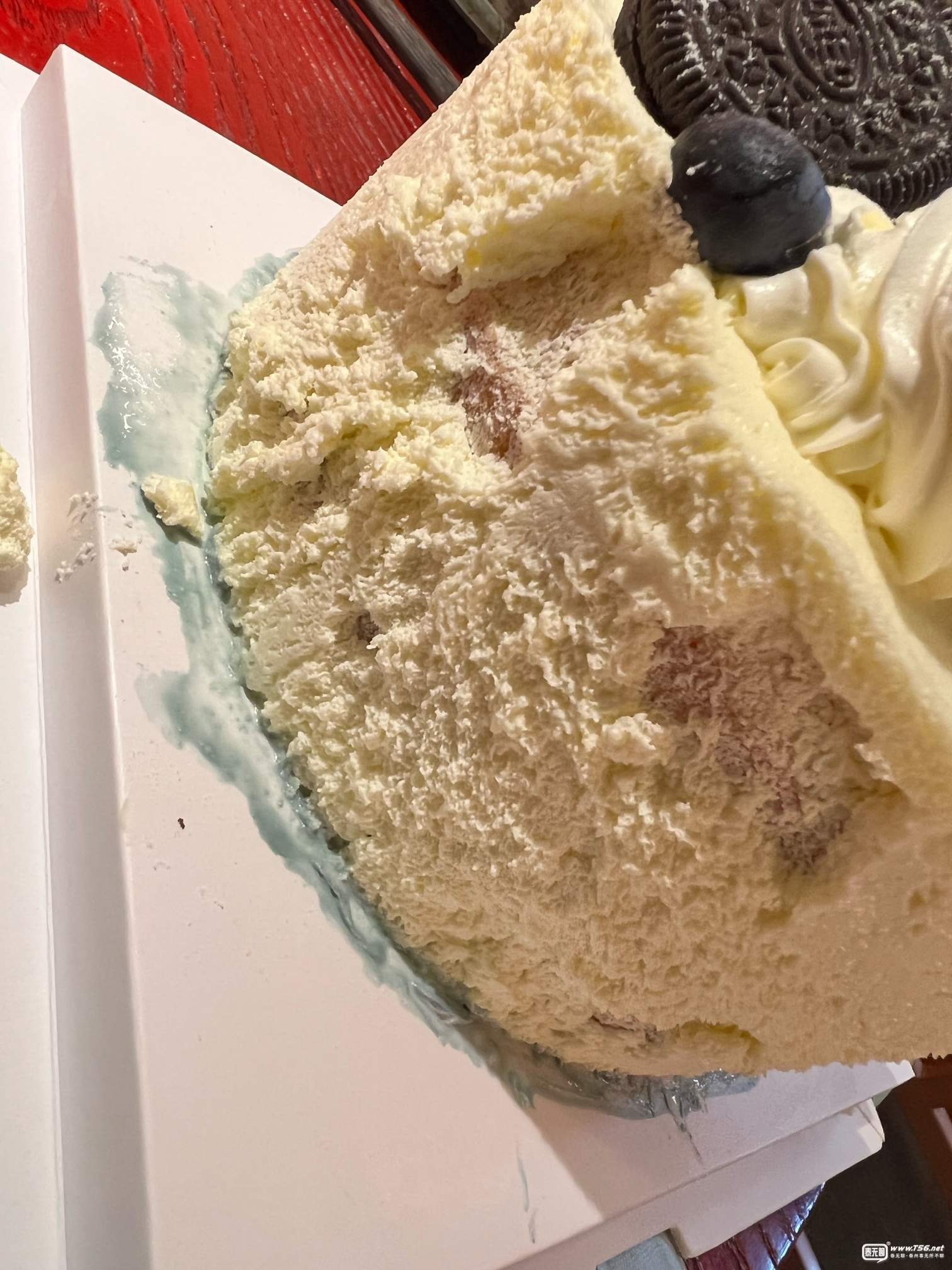 | 變不變質嘗下味道不就知道了,看這樣子像是冷凍時間久了,又放外面解凍久了的樣子,奶油有凍過的冰渣狀 |