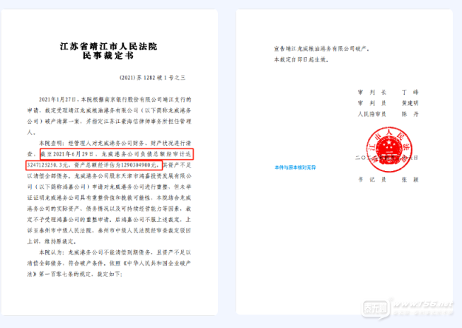 近日 阿里拍賣破產(chǎn)強清平臺掛出了 靖江龍威糧油港務(wù)有限公司 和靖江龍威糧油工業(yè)有限公司 的資產(chǎn)拍賣公告 企業(yè)位于靖江經(jīng)濟開發(fā)區(qū)新港園區(qū) 此次拍賣主要涉及公司國有土地使用權(quán) 房屋建筑物及附屬物、 ...
