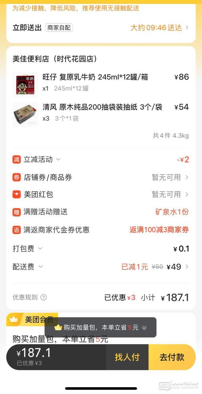 正文摘要:無語啊,本以為兩三天解封了,這下封了快一周了,想說外賣買個紙吧,這一打開嚇尿了,49元商家配送… 等于就仗著自己家門口路沒有封的超市就賺路費吧 無語 |