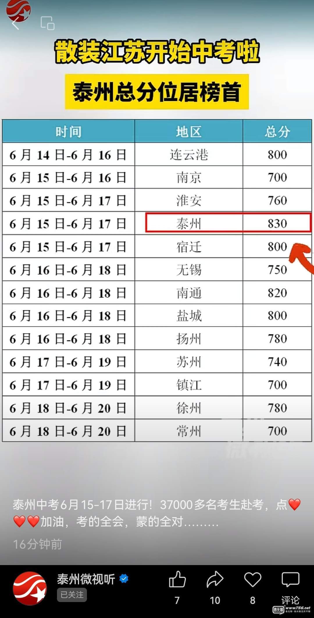 | 泰州總分最高 |