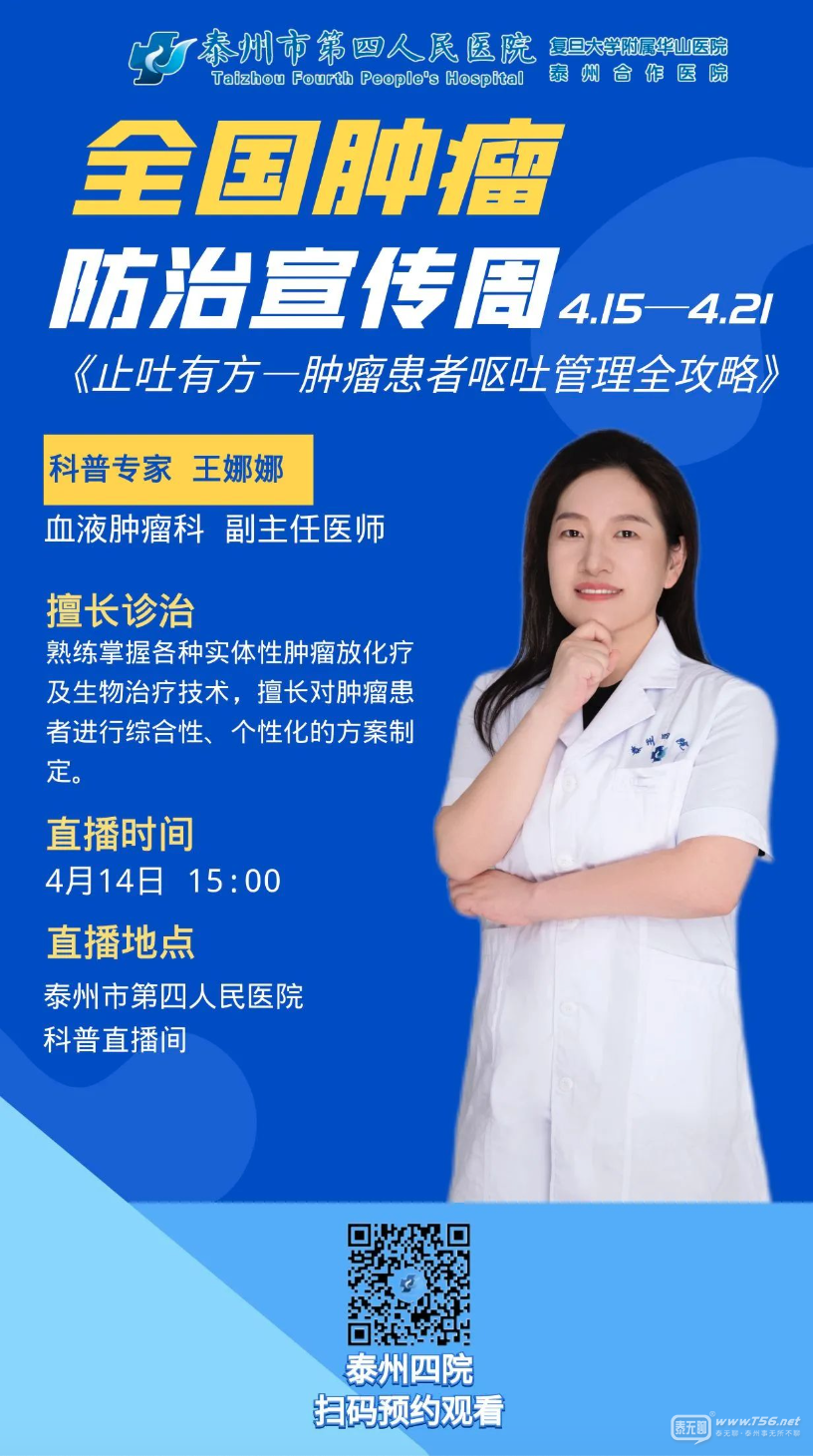 直播預(yù)告 | 泰州四院止吐有方:腫瘤患者嘔吐管理全攻略