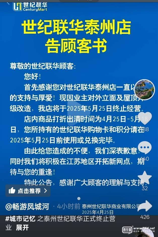 一級建造師 發(fā)表于 2025-4-24 20:49 泰無聊不是成天說的泰州人少,消費力不行嗎?揚州世紀(jì)聯(lián)華超市去年就關(guān)了,難道揚州消費力還不如泰州?最起碼泰州店還多撐一年。 |