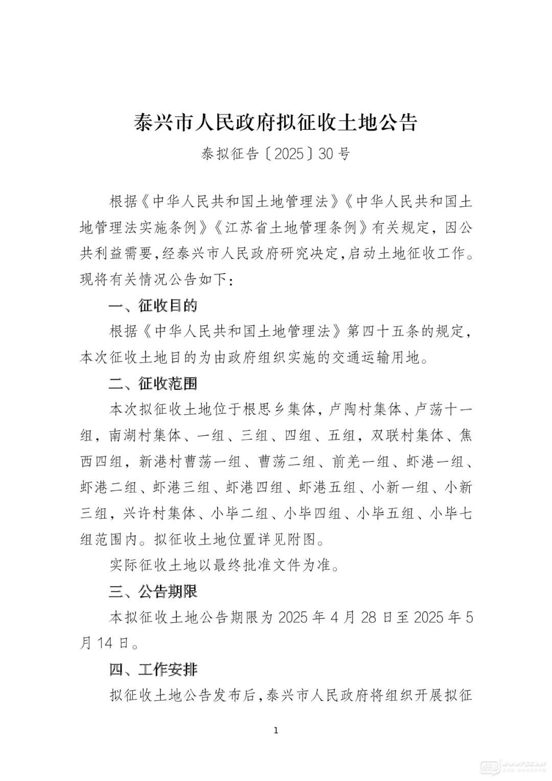 鹽宜鐵路泰興段,6個鄉(xiāng)鎮(zhèn)、街道最新土地征收公告
