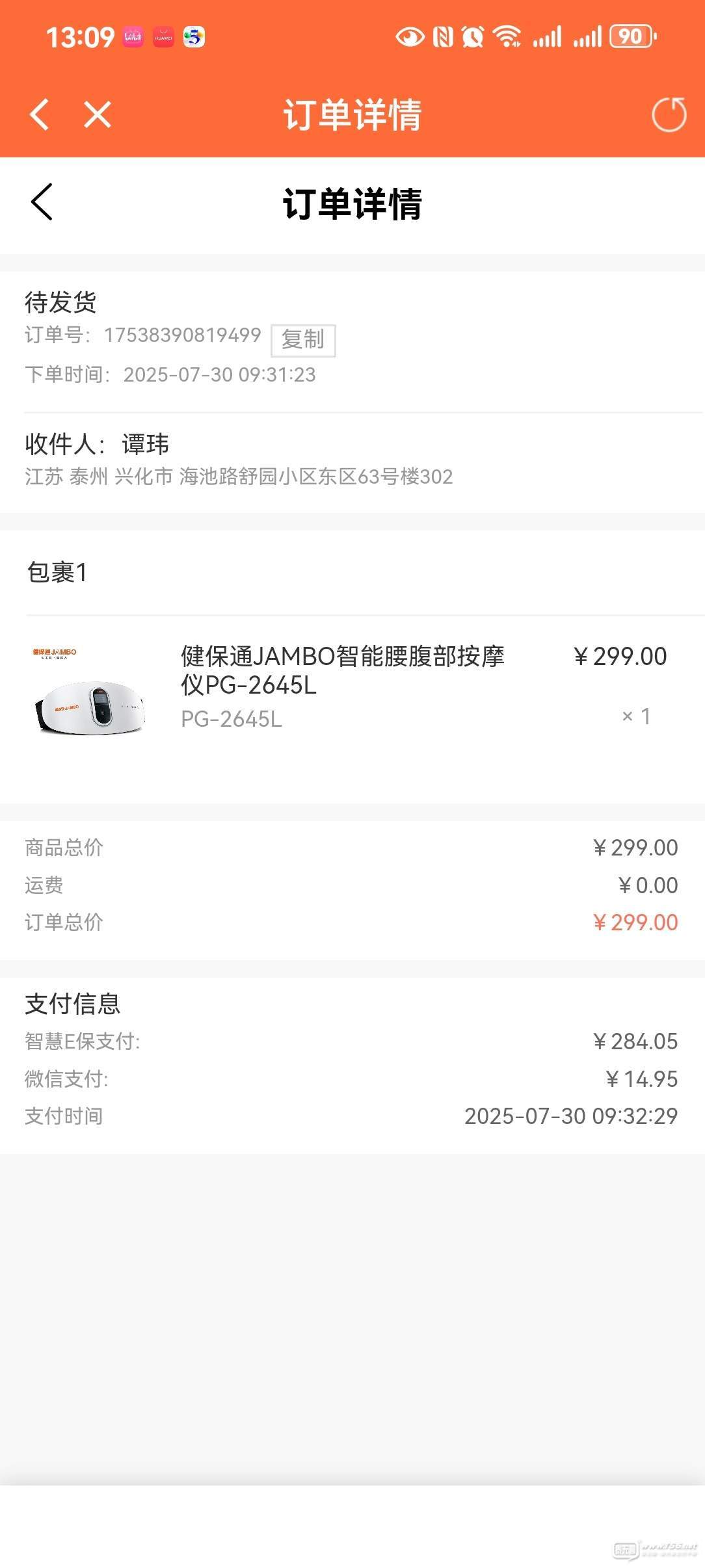 前幾天在智慧E保網(wǎng)站買了一款健康設(shè)備,說好了自下單之日起48小時內(nèi)發(fā)貨,我是7月30日9點32分下單,48小時之后應(yīng)該是8月1日9點32分發(fā)貨,可是到了本日8月1日10點多鐘還沒有發(fā)貨,這也太不講信用了