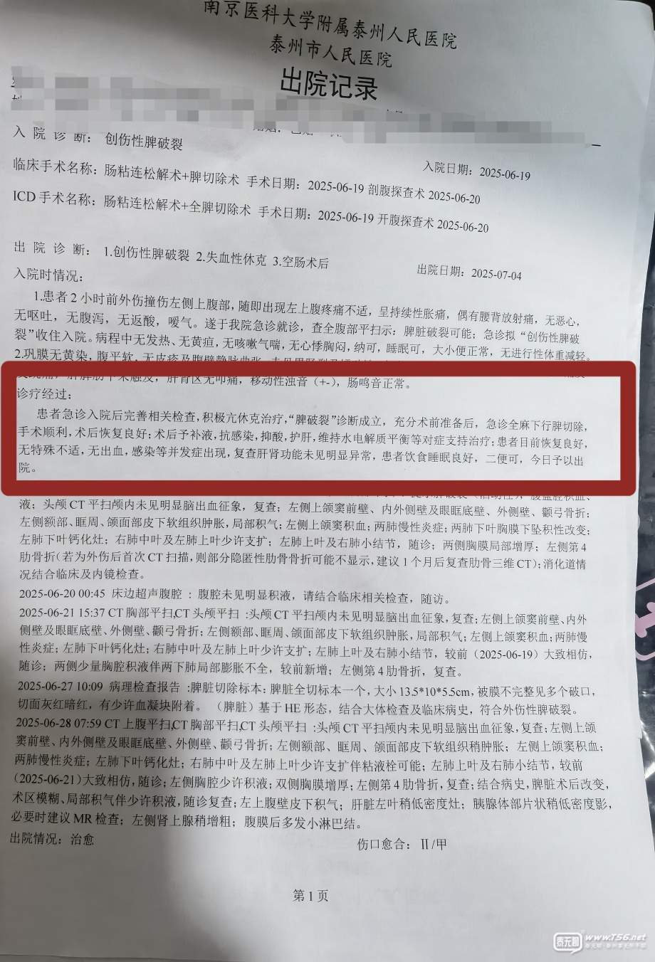 正文摘要:本帖最后由 伽羅 于 2025-8-7 08:45 編輯 事情經(jīng)過 今年6月19日下午,我母親在泰州人民醫(yī)院新院區(qū)做了全脾切除術(shù)。醫(yī)生告知我手術(shù)做的很順利,比較完美。 術(shù)后幾個小時大概在晚上12點左右,我陪床時發(fā)現(xiàn)監(jiān)控儀 ... |