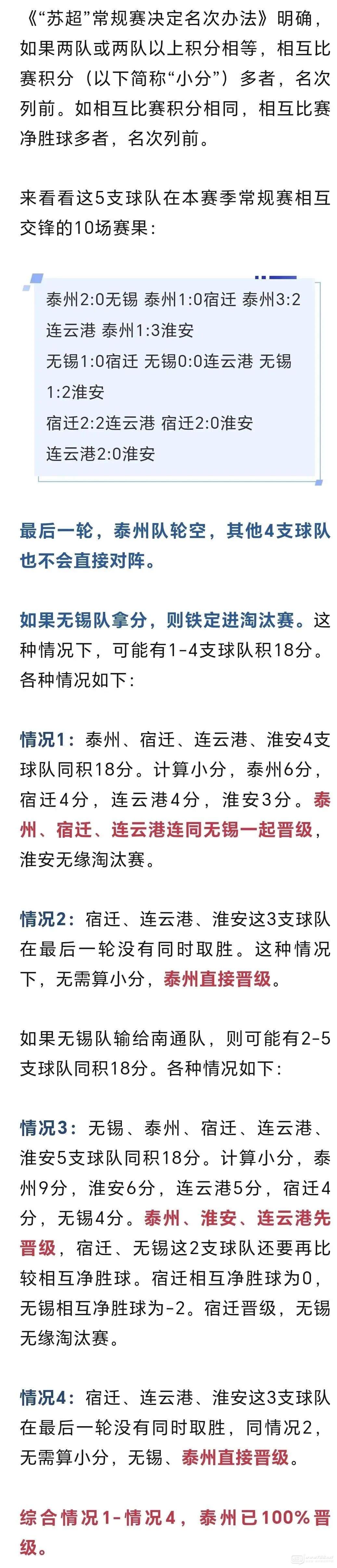 正文摘要:泰州隊已提前晉級了?!“蘇超”第十二輪戰(zhàn)罷,從積分來看,排名前四的南通、徐州、南京、鹽城已提前拿到淘汰賽門票。 泰州、無錫、宿遷、連云港、淮安,5支球隊將爭奪4張?zhí)蕴愰T票。 這5支球隊中泰州隊已經(jīng)提前 ... |