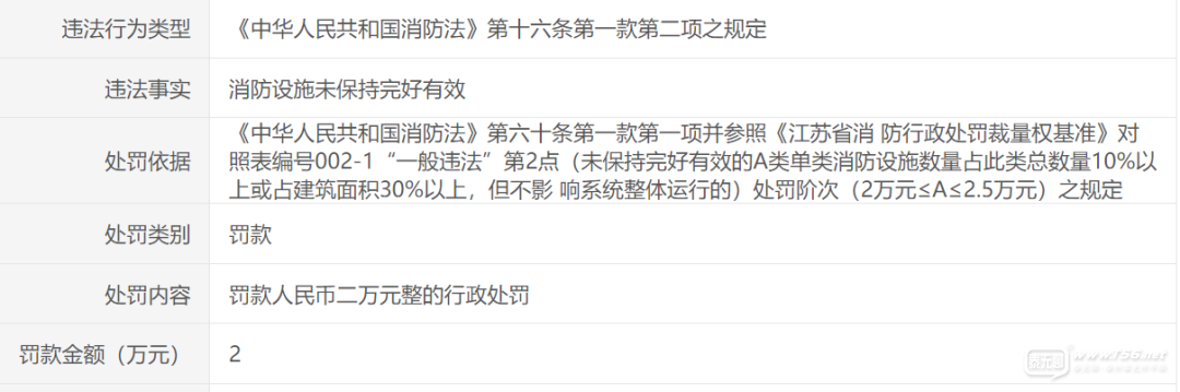 正文摘要:10月27日,姜堰消防大隊(duì)連續(xù)發(fā)布了兩則行政處罰公示,都涉及一物業(yè)公司,經(jīng)查詢,其在姜堰服務(wù)的小區(qū)為壹號(hào)公館。第一則行政處罰是因?yàn)橄涝O(shè)施未保持完好有效,罰款2萬元: |