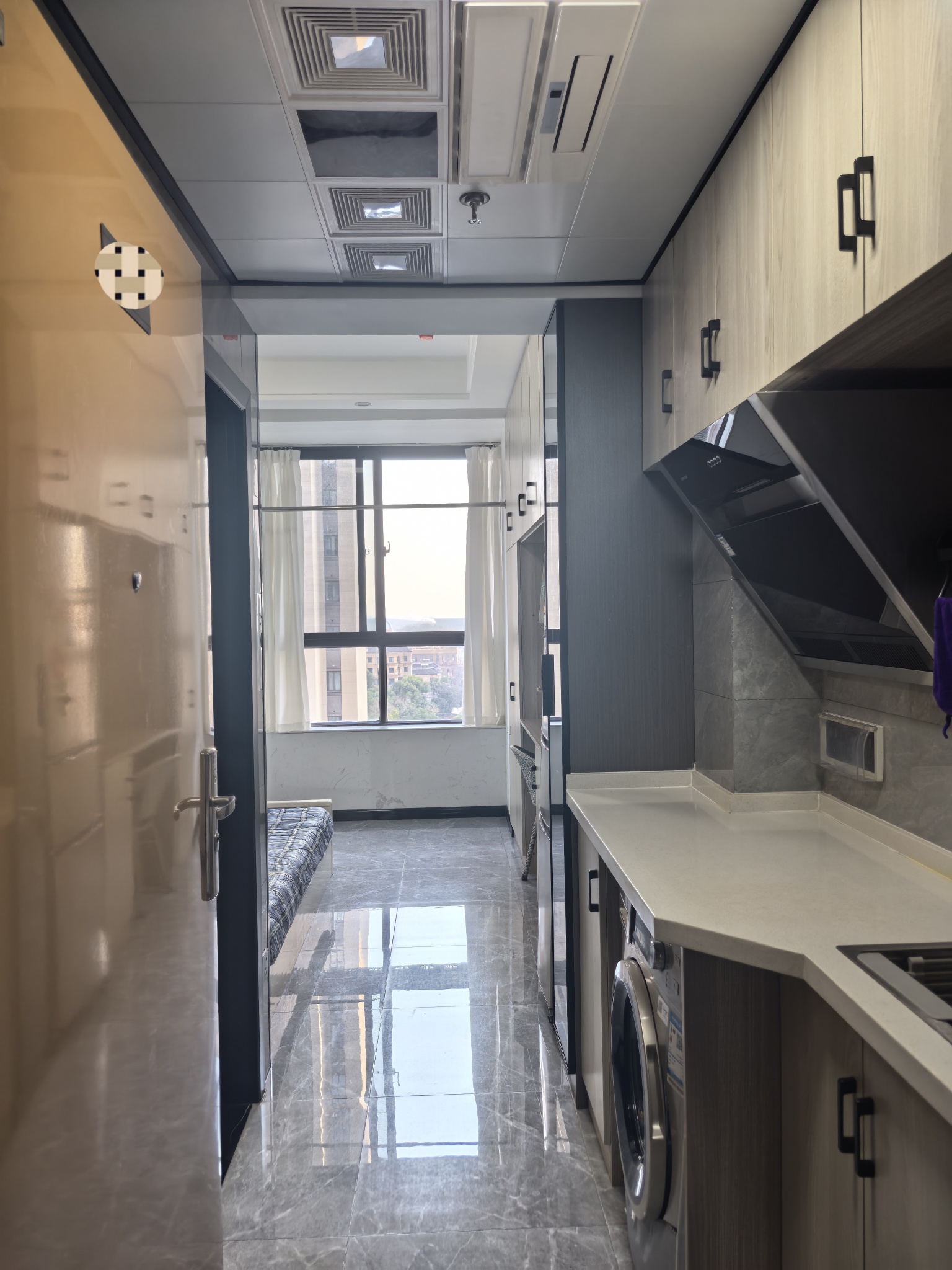 面積20平米不到,但屬于獨立門戶,有床、馬桶、淋浴、空調(diào),有窗通風,位于三樓,有電梯上下,是交通要道的路邊,晚上又聽不到噪音。