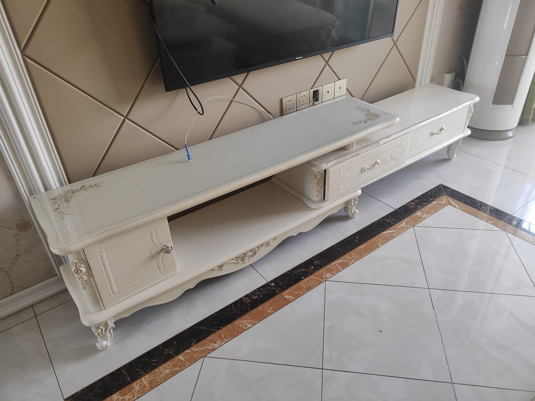 搬家了,閑置家具家電處理!歐式沙發(fā)帶茶幾一套180元,海爾洗衣機帶烘干230元,歐式燈50元,電視柜50元,1.8米實木大床帶一個床頭柜200元。美的冰箱180元。海陵區(qū)買家自提。