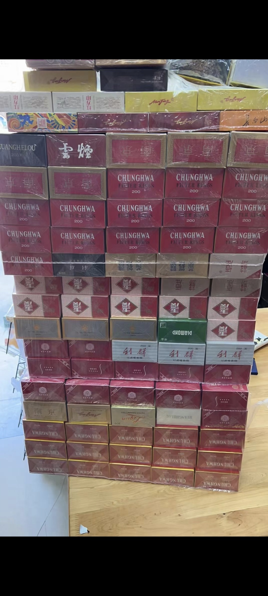 450元一條的硬中華,處理價(jià):390元一條!還有其他品牌香煙,都是出廠價(jià)。
