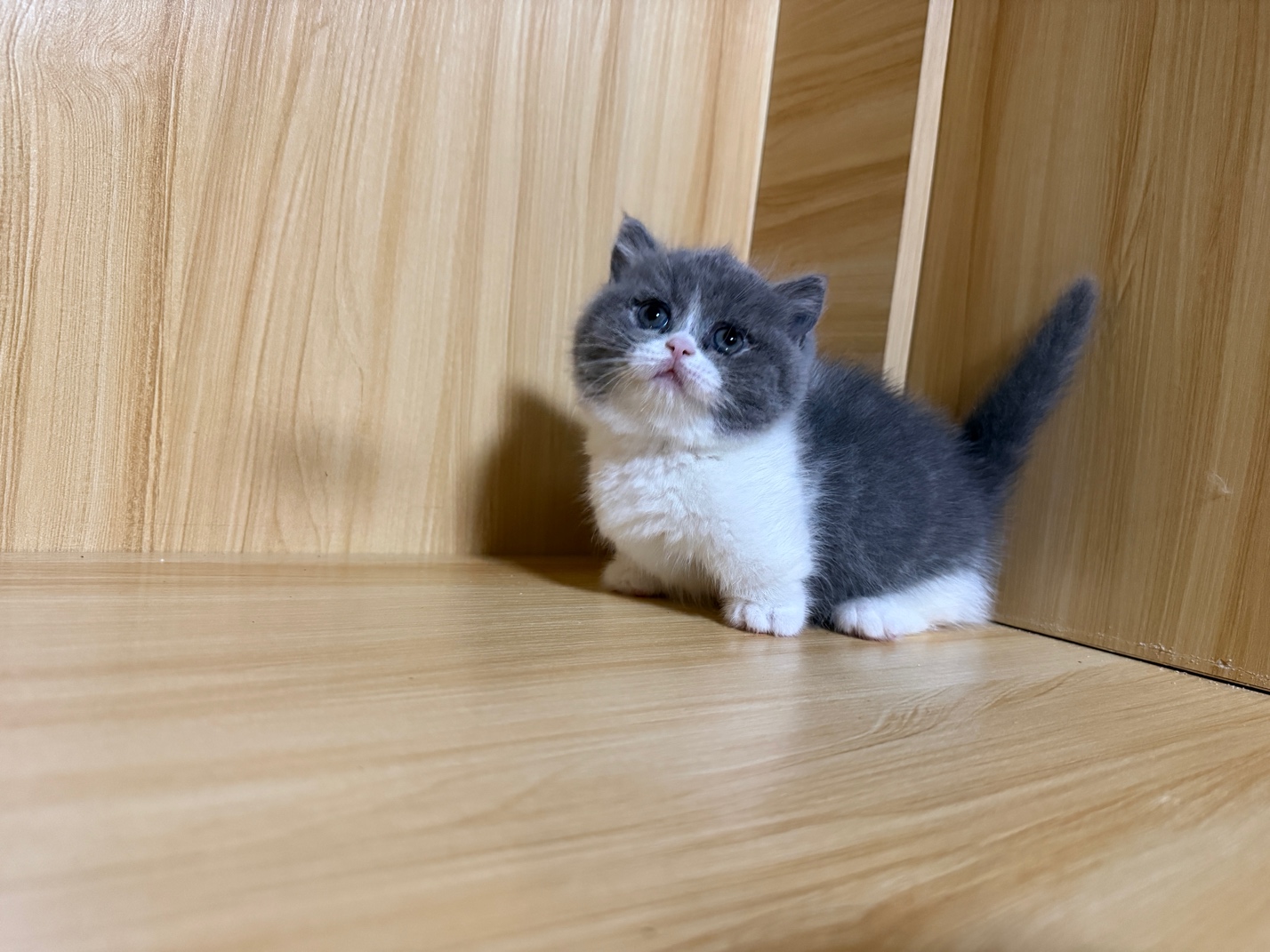 家養(yǎng)英短藍白矮腳曼基康 五粉 正開包子臉 貼地矮 滿背 雙下巴 已接一針疫苗 標價不是賣價 泰州本地的可以上門看貓